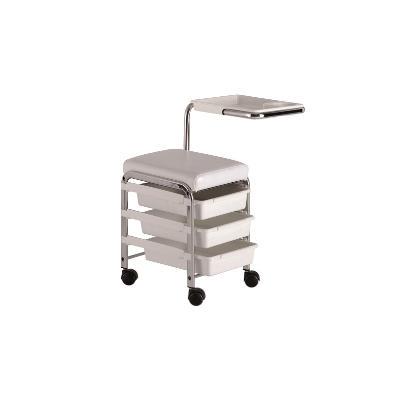 Carro manicura color blanco. Con 3 bandejas extraíbles y una auxiliar.