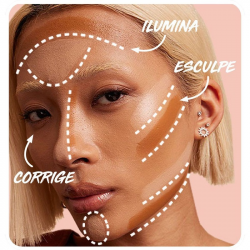 para contornear e iluminar alrededor de los pómulos, o crea un look totalmente esculpido aplicándolo también en la