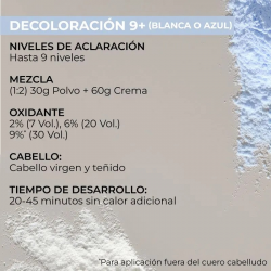 Aclara hasta 9+ niveles con resultados rubios limpios