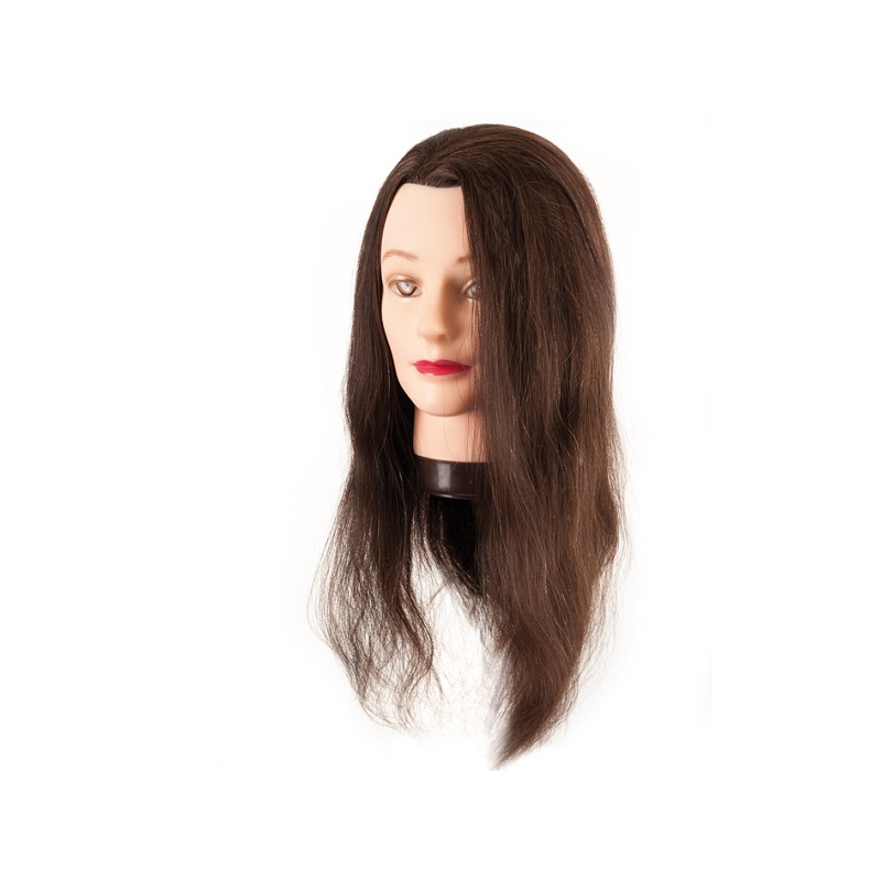 Maniquí de cabello castaño 100% natural de 45-50 cms de largo. Para corte, decoloración,