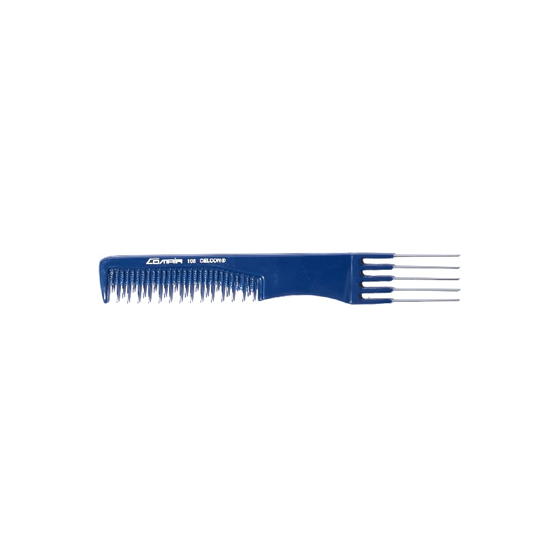 Peine de 5 púas metálicas y dientes alternos para cardar y colocar el cabello.