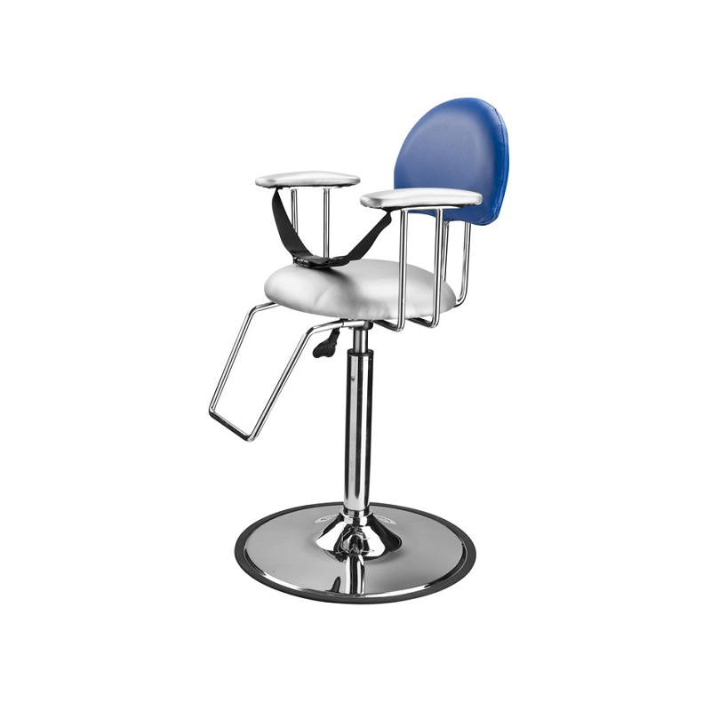 Silla especial para niños con apoyapies y cinturón de seguridad, base hidráulica cromada.